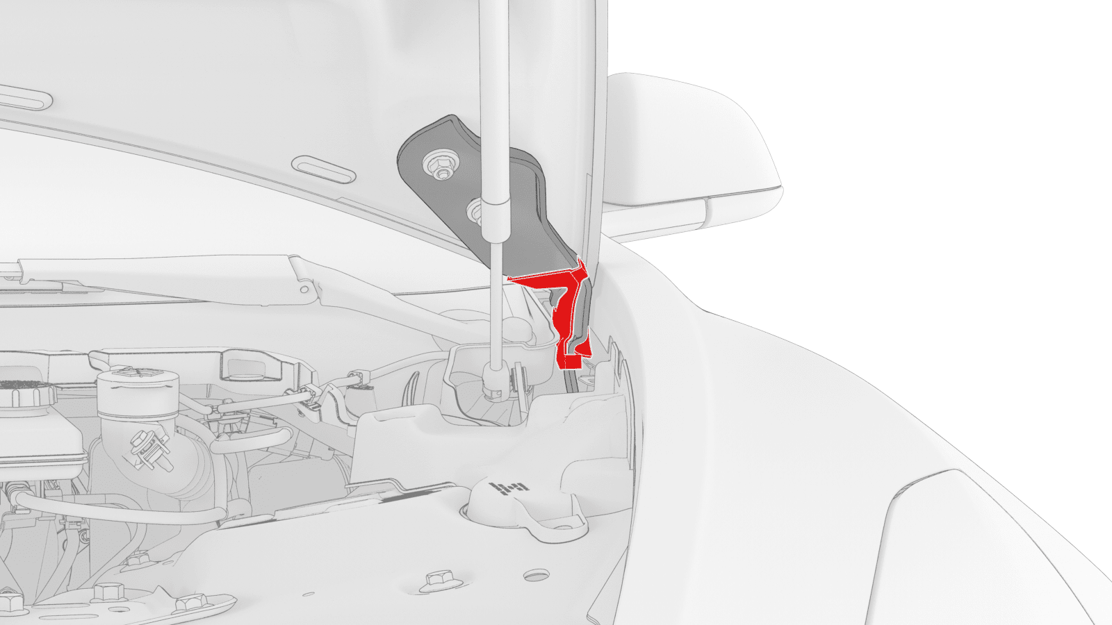 - With an assistant, remove the hood support from the vehicle.