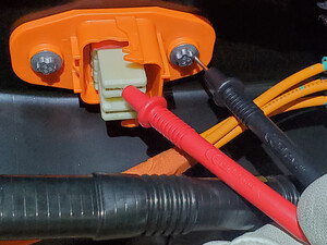 measure voltage , and then measure the voltage across the 12V/LV auxiliary