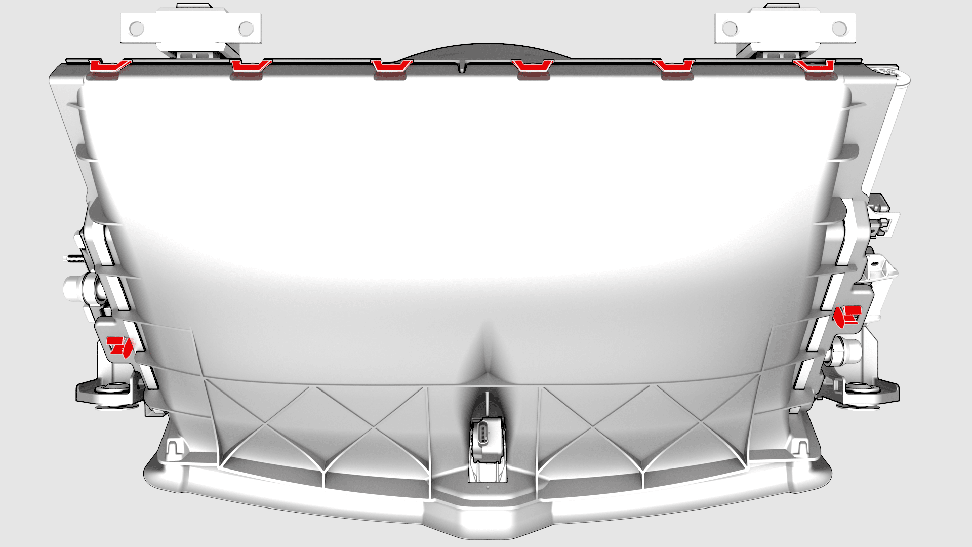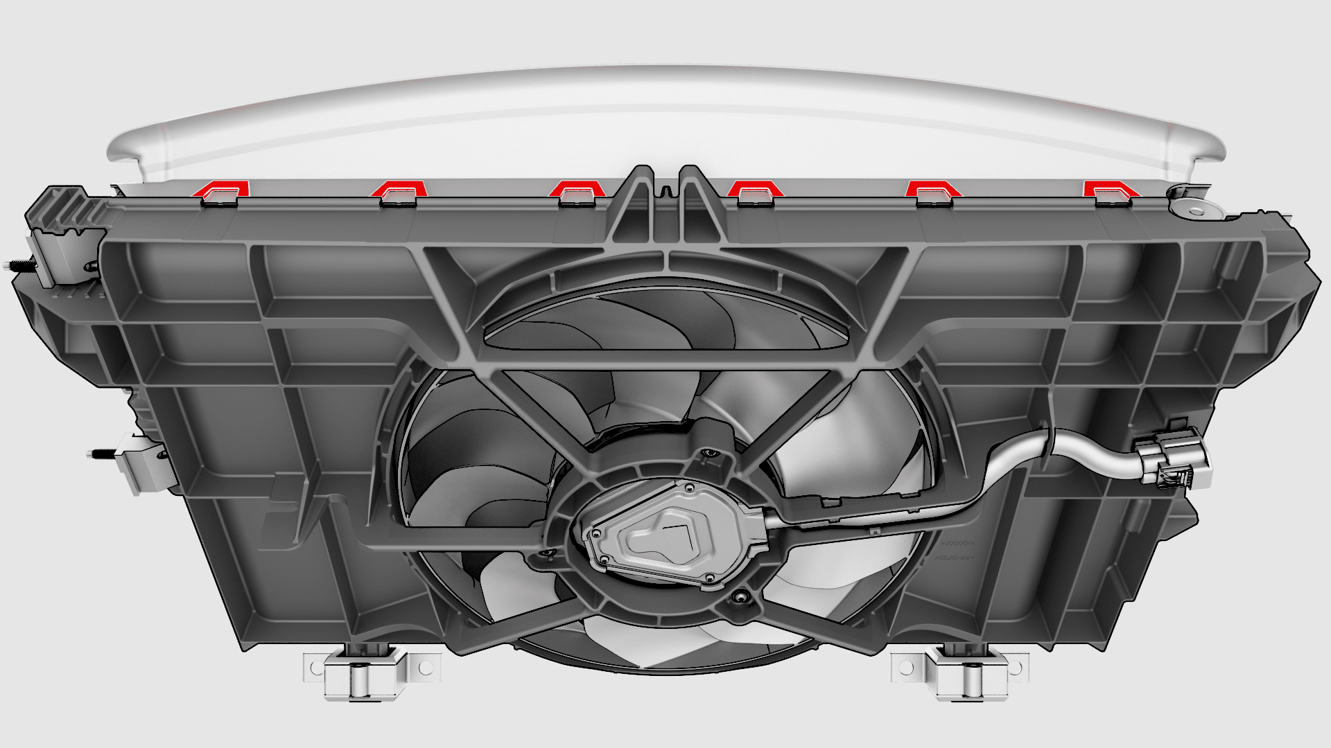 - Release the clips that attach the active grille shutter to the cooling fan module, and then remove the active grille shutter from the module.