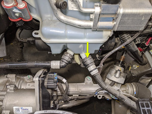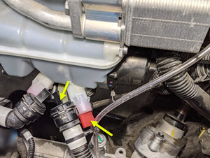 Tip: Place absorbent material below to avoid coolant on steering gear connections.