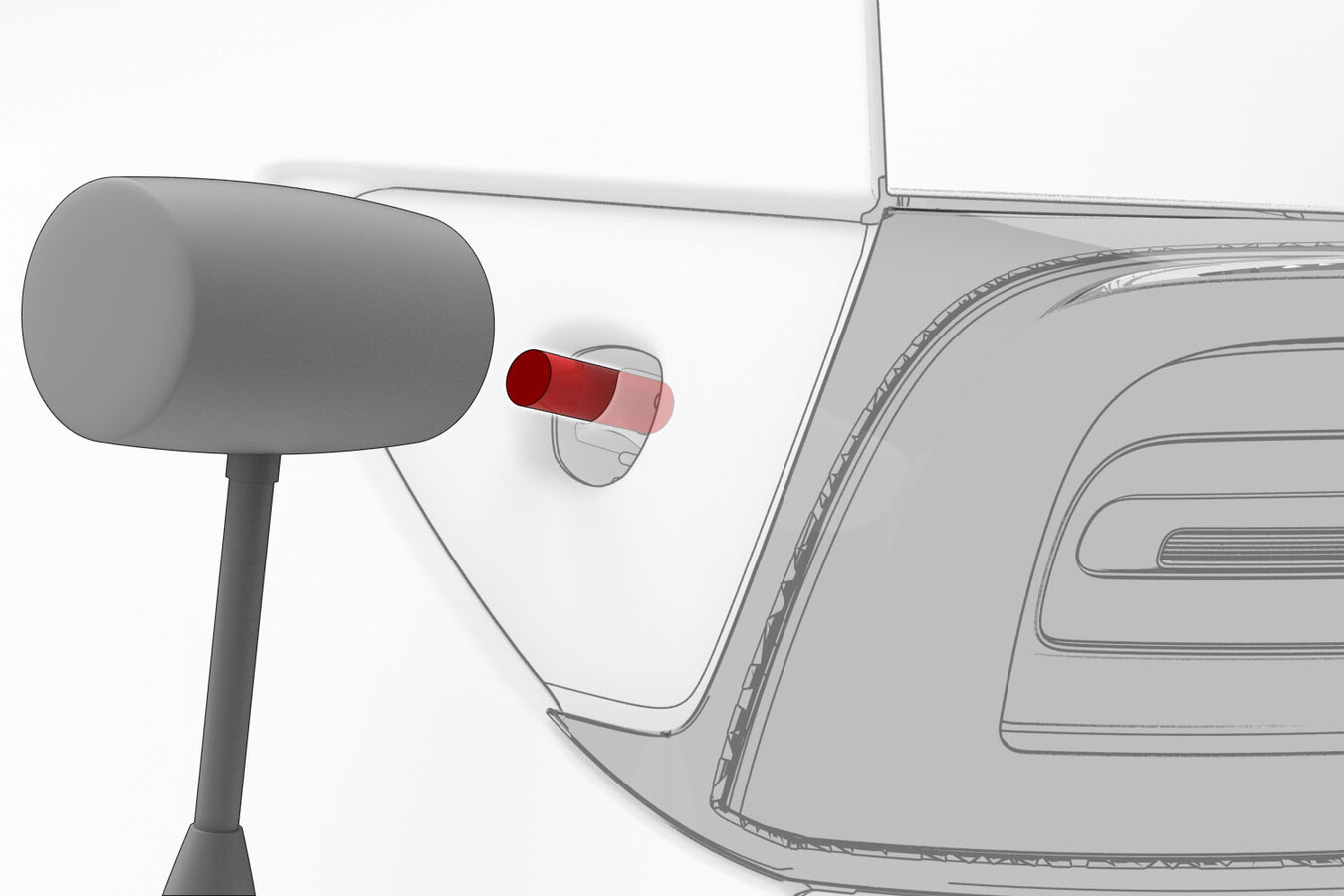 - Use a dead blow hammer to fully seat the charge port pin deadfront into the charge port pin.