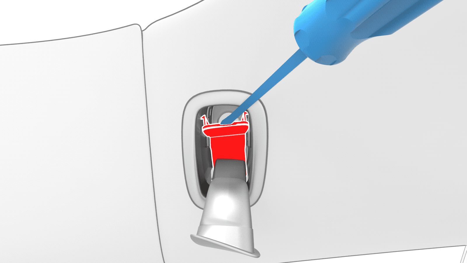 - Open the LH and RH hook covers, and then release the clips that attach the screw covers to the LH and RH coat hooks.