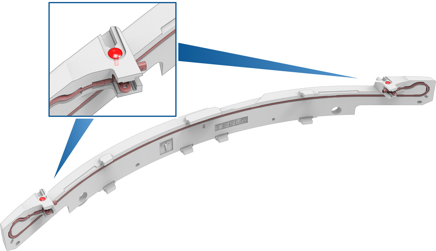 - Install the pedestrian protection pressure tube into the front bumper beam foam, and then fasten the clips (x2) that attach the LH and RH pedestrian protection pressure tube sensor to the foam.