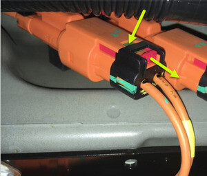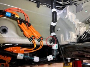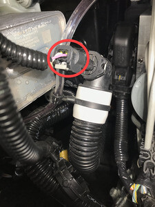 - Disconnect the coolant temperatur sensor connector from the chiller to battery coolant hose.