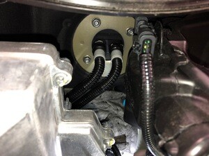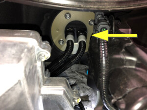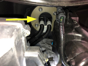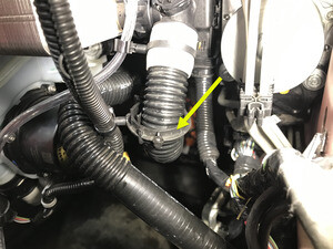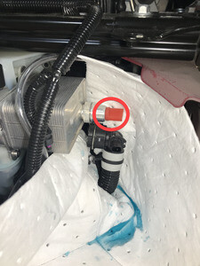 - Disconnect the inner coolant hose to the car computer mount, and then plug the hose.