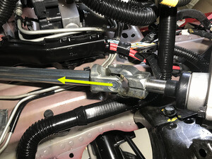 - Slide the steering shaft off the steering rack and out of the way to gain access to the brake lines.