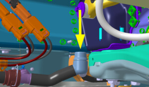 - Disconnect the chiller to battery hose from the HV battery front manifold hose.
