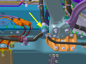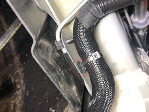 - Remove the FDU bypass hose clip from the subframe.