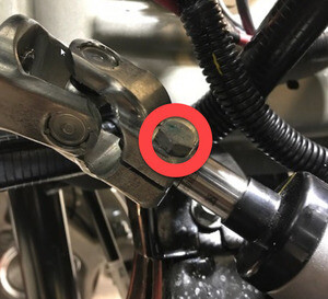 - Remove the bolt that attaches the steering shaft to steering rack (torque 18 Nm).