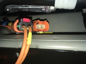 - Position a coolant drain container underneath the LH front side of the HV battery.
