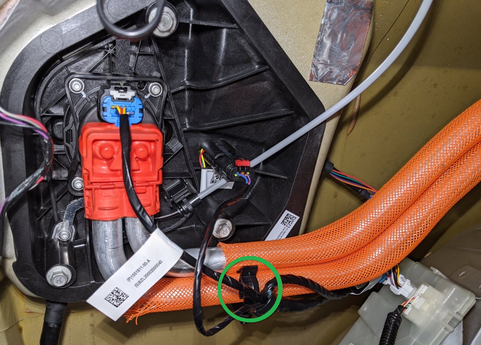 - Disconnect the charge port jumper cable from the ECU and remove the harness from the vehicle.