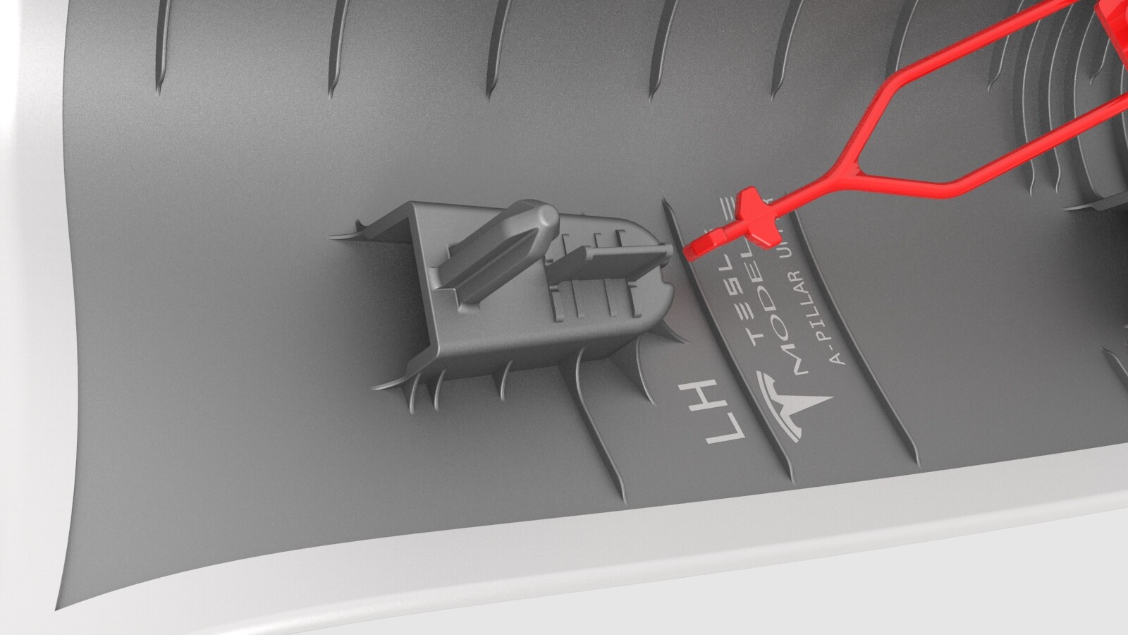 - Fasten the tether hooks (x3) to the LH upper A-pillar trim.
