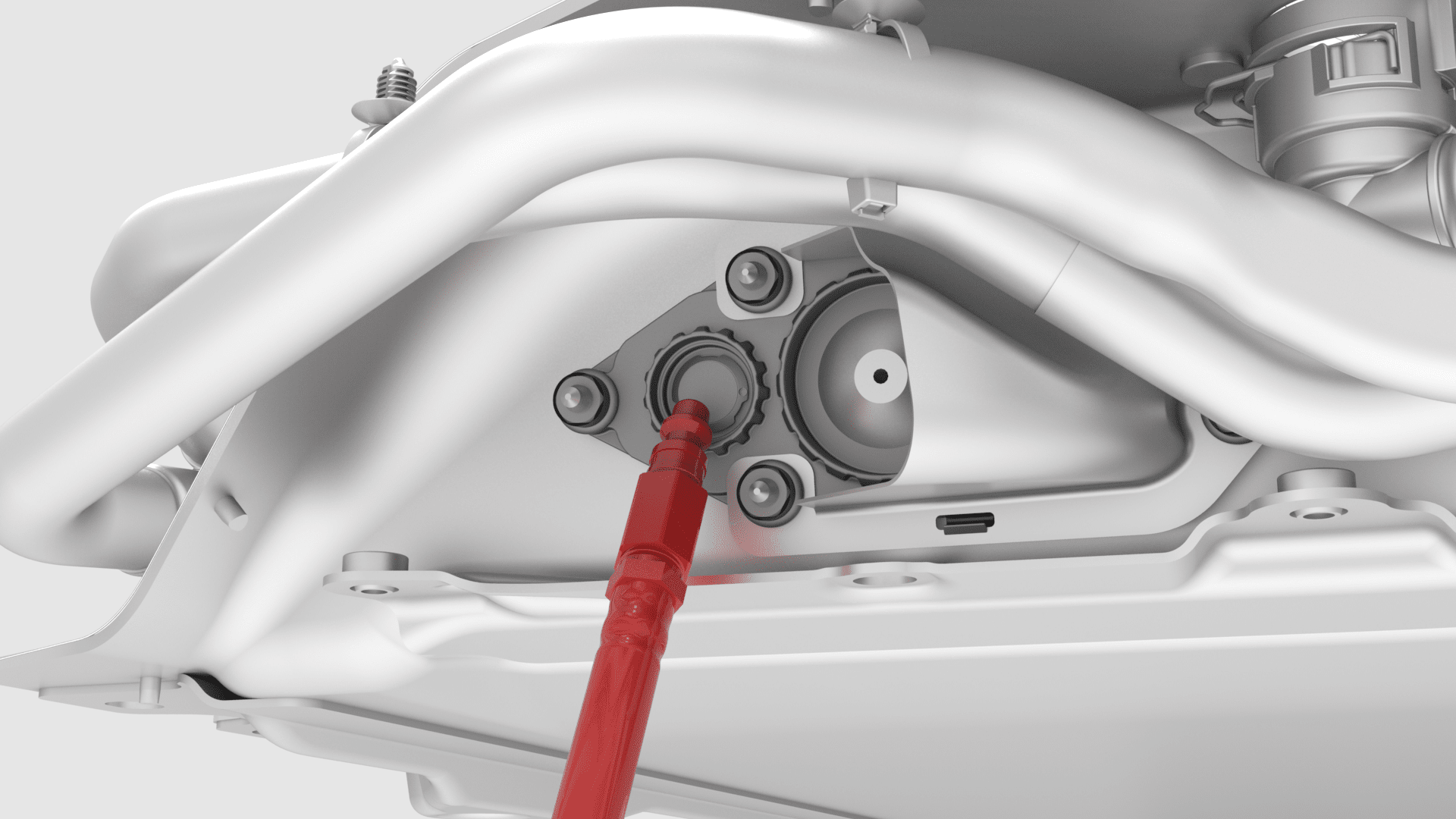 - Install the leak test adapter plug into the RH shroud assembly.