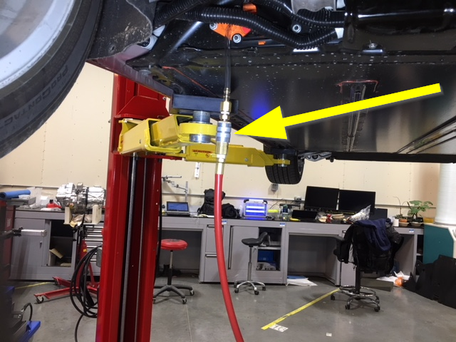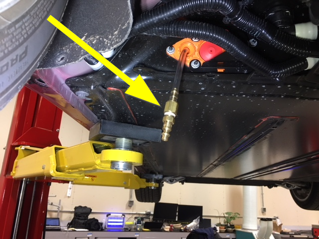 - Connect the pack enclosure leak tester to the leak test adapter in the LH HV battery shroud assembly.