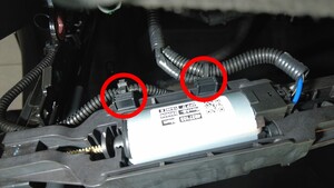 - Install the harness clips (x2) to the RH front seat track motor.