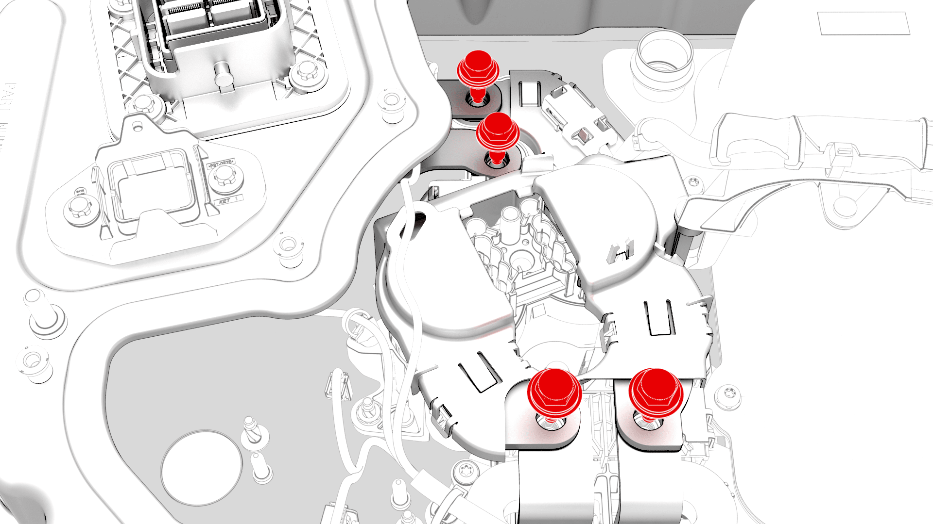 - Remove the clips that attach the HV battery ancillary bay harness to HV battery fast charge contactor cover.