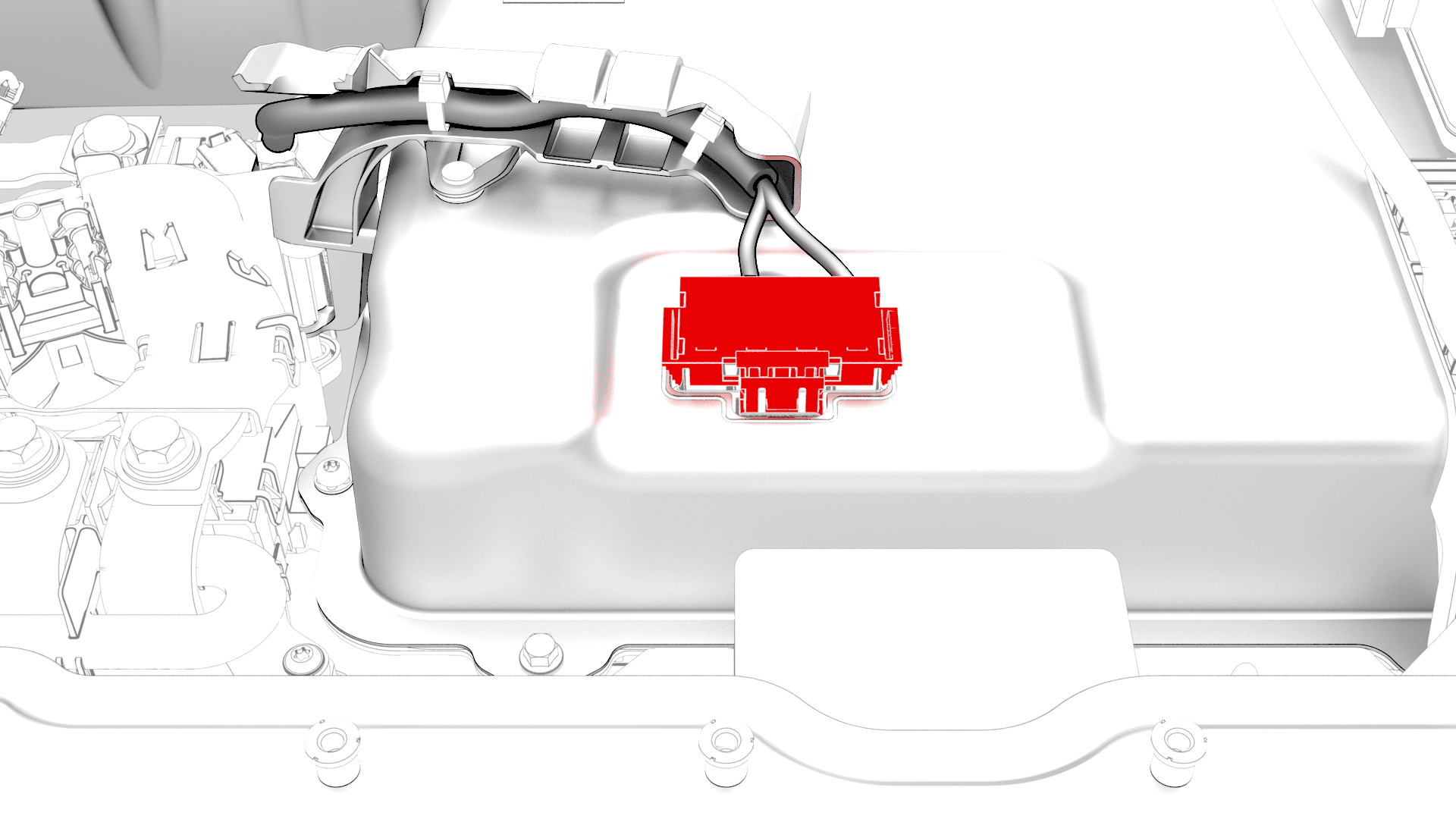 - Connect the electrical harness to the HV battery fast charge contactor connector.