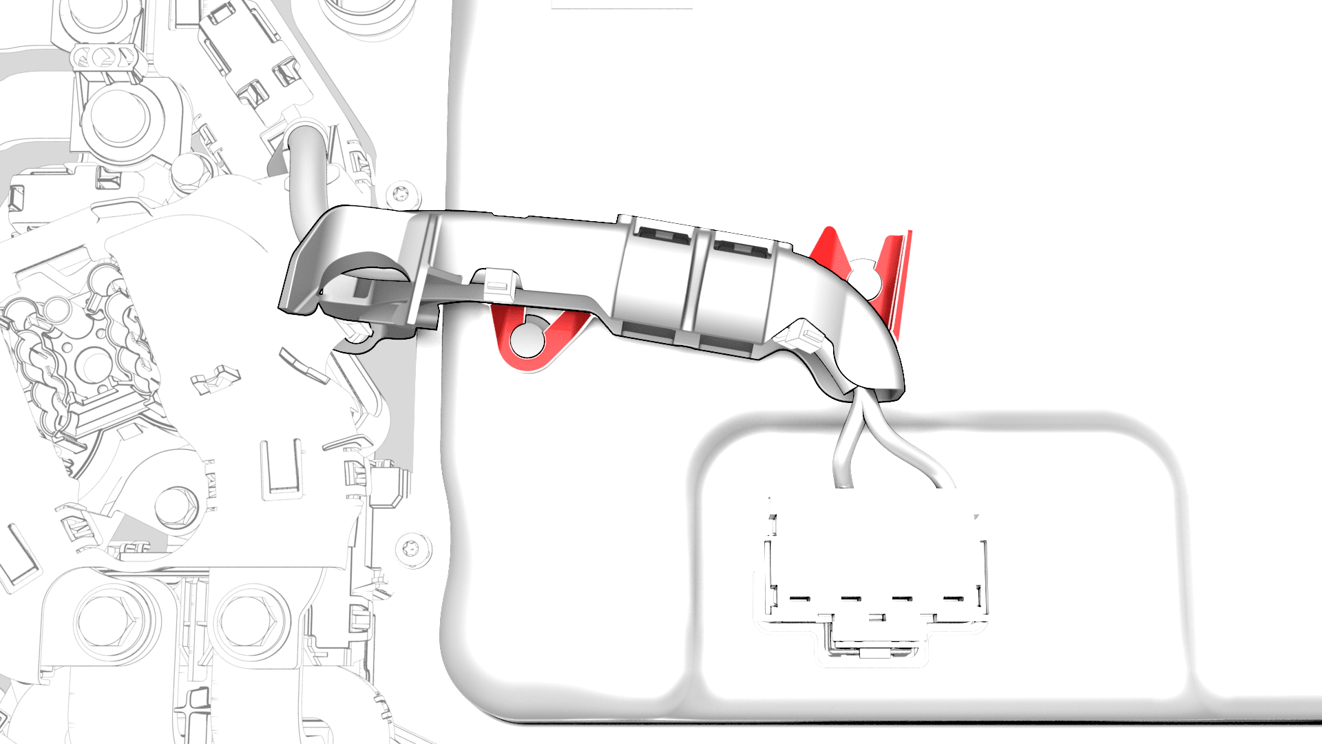 - Install the clip that attaches the HV battery ancillary bay harness to the HV battery fast charge contactor.