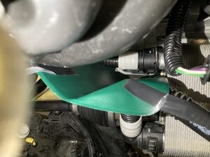 - Install plugs to the open front drive unit inverter-heat exchanger hose and the heat exchanger coolant coupling.