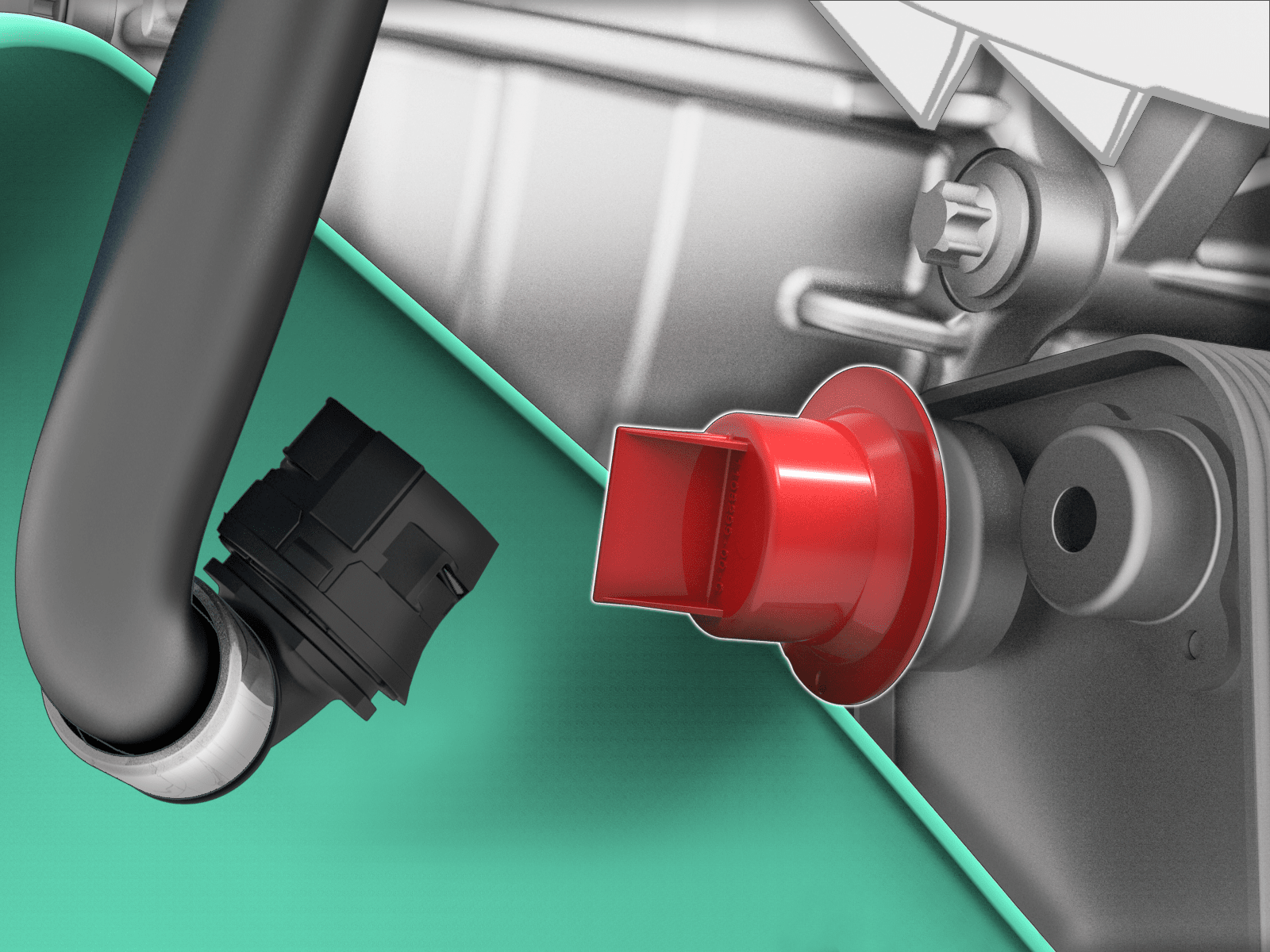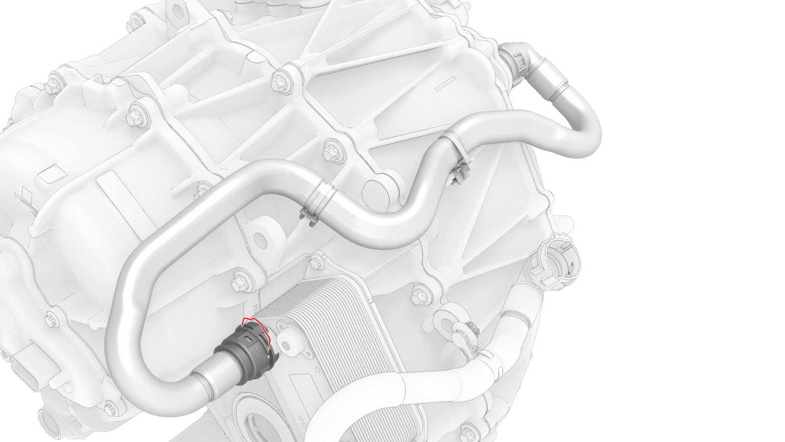 the front drive unit upper inverter coolant coupling.