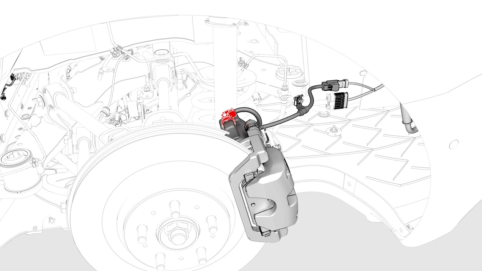 83 Nm (61.2 lbs-ft) - Connect the electrical harness to the LH rear brake caliper connector.