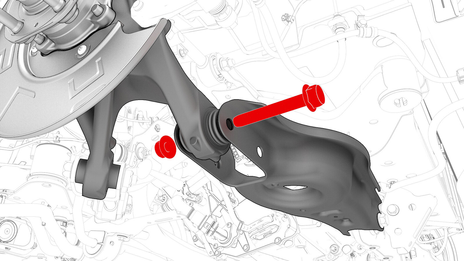 that attach the LH rear aft lower link to the LH rear suspension knuckle.