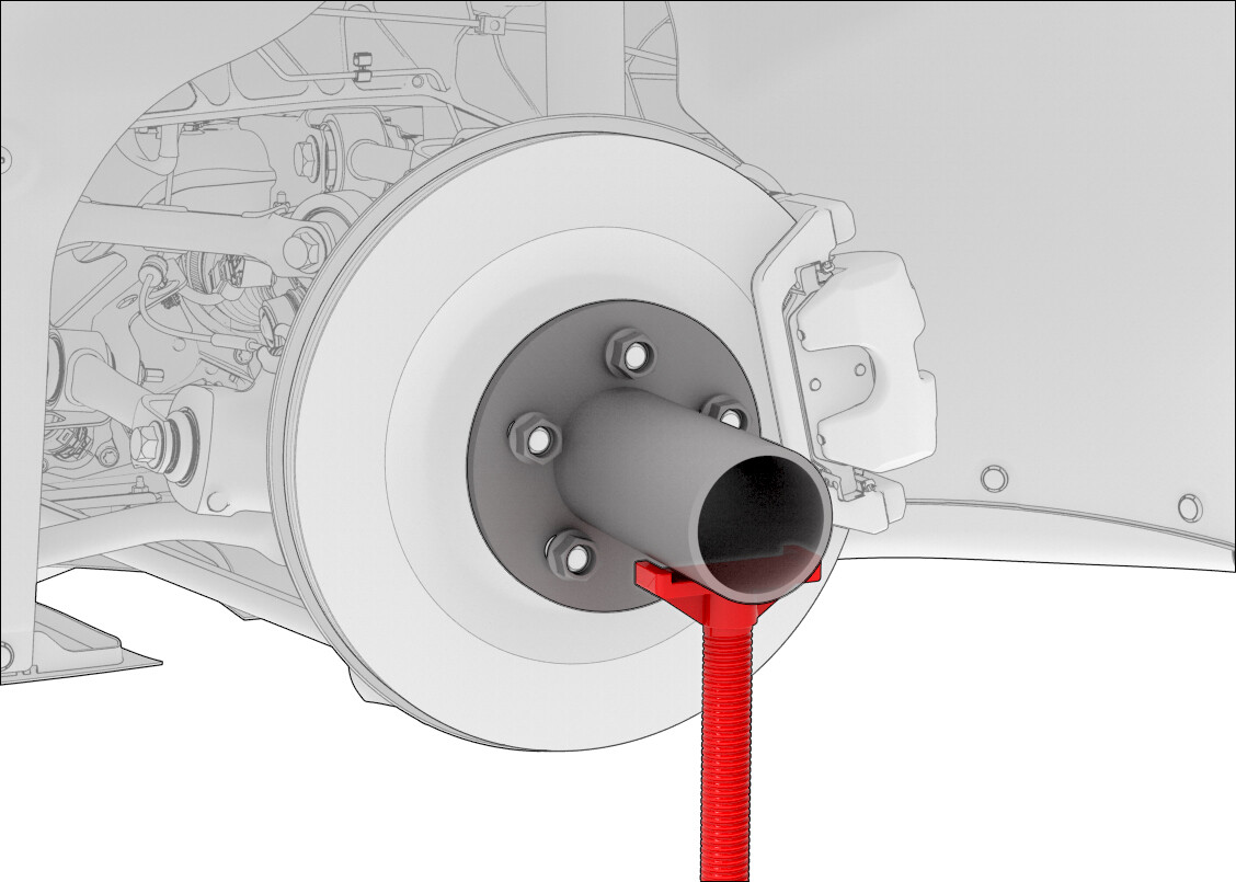 - Install the hub jack adapter onto the LH rear hub and hand-tighten the lug nuts.
