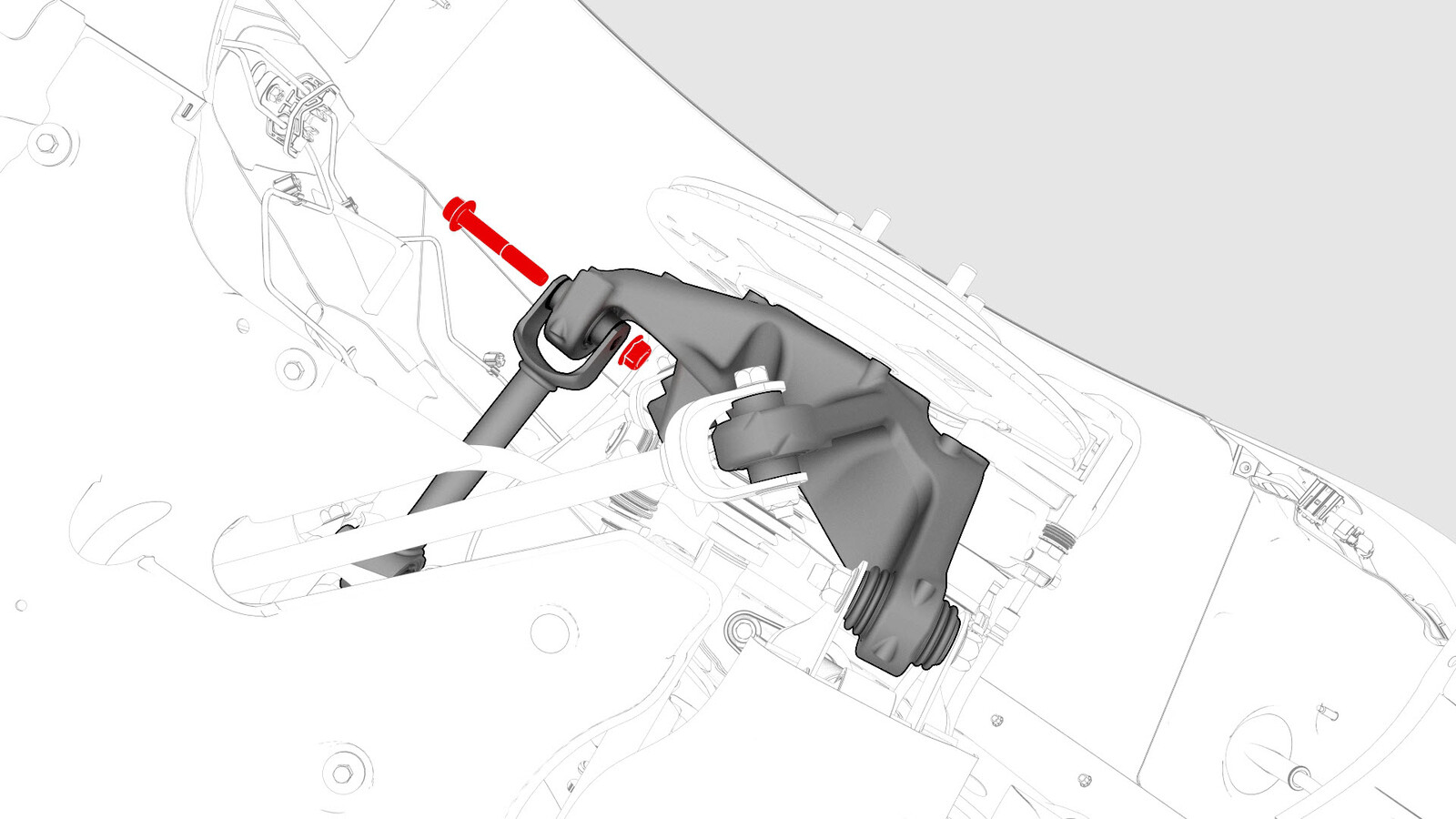 - Install and hand-tighten the bolt and nut that attach the LH rear upper aft link to the LH rear suspension knuckle.