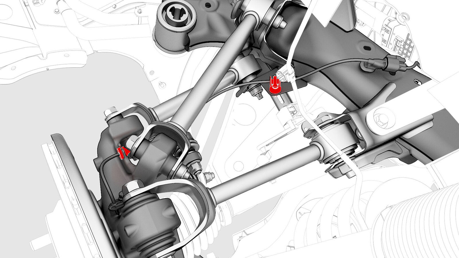 - Remove the bolt that attaches the rear LH ABS wheel speed sensor to the knuckle.