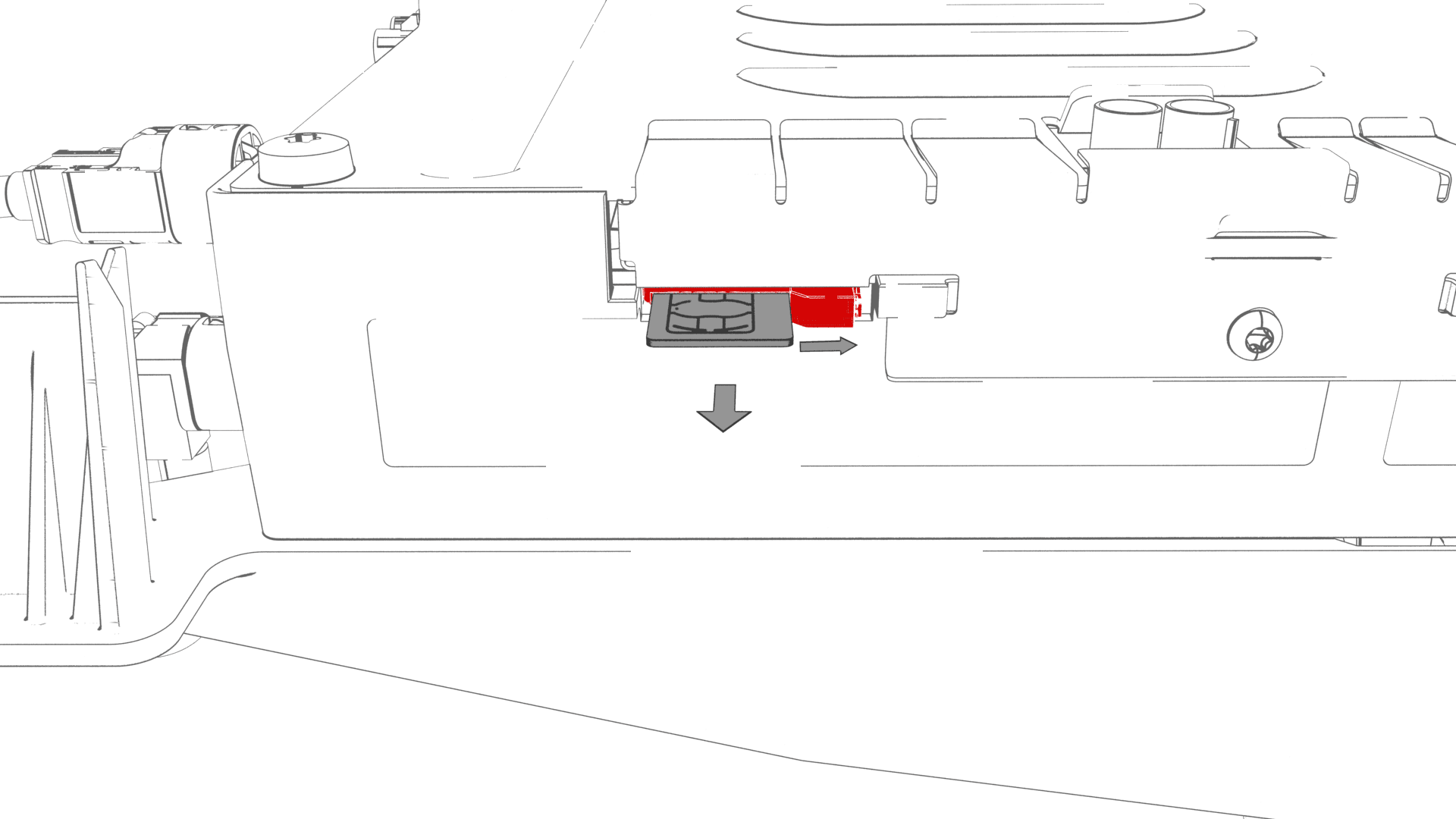 - Use a trim tool to move the catch to the right, and release the SIM card from the slot in the car computer.
