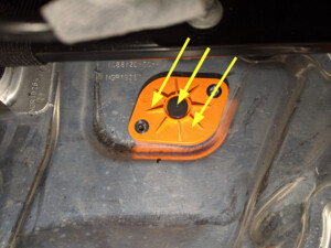 NoteMeasure the ride height 75mm inward of the HV battery ski hole at each corner, If using ballast bags, move the front seats as necessary to achieve ride height spec, See Service Manual for ride height specifications