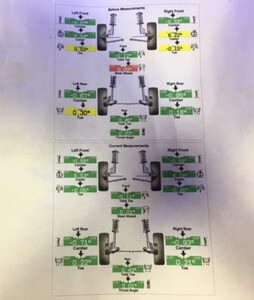 - Verify alignment reading is within specification and print vehicle summary