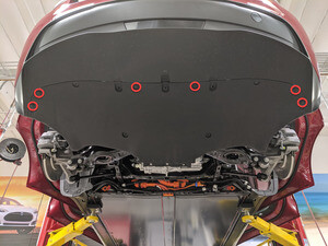 Apply Loctite 222 onto mid aero shield bolts and install mid aero shield