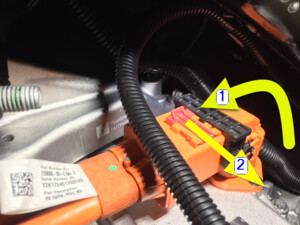 Disconnect RH side 12V subframe harness connector
