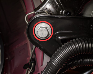Unbolt LH strut from body at top mount