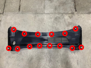 Note14x clips, Hold rear wall of frunk to keep from flexing while engaging front clips