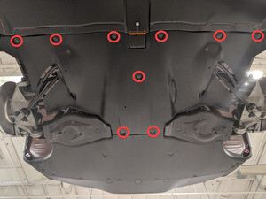Remove lower bolts securing rear battery enclosure skid plate