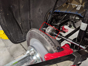 Measure from bottom of quarter panel to center of axle as a secondary check to make sure LH suspension is set to ride height