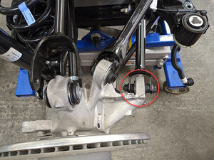 Torque bolt securing LH rear toe link to knuckle