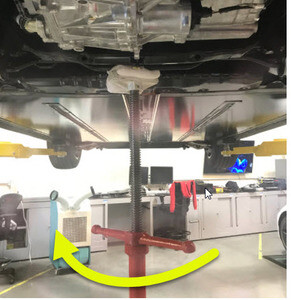 NoteLower rack arms fully and remove from under vehicle if necessary, Remove air suspension from "Jack Mode" if equipped