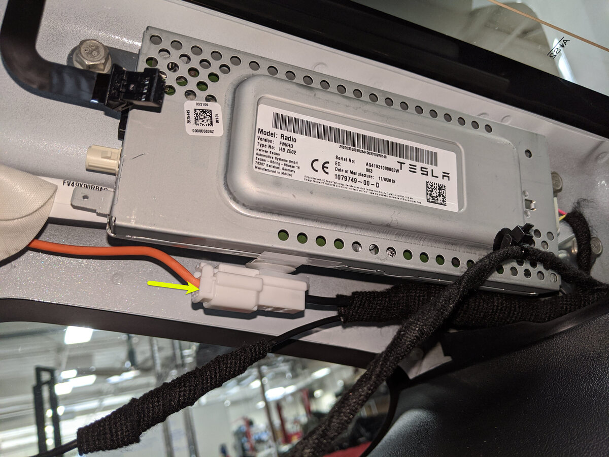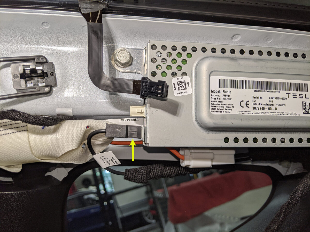 - Connect the RH antenna filter harness connector to the tuner.