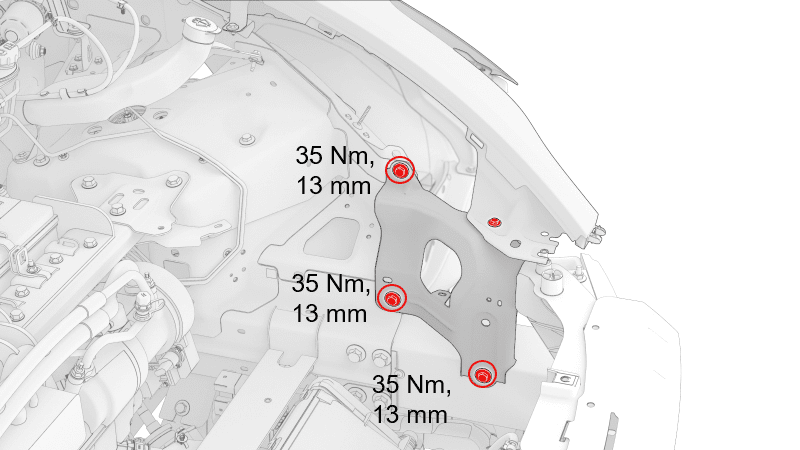 | Bolts (x3) that attach the LH front fender support to the vehicle |