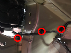 - Remove the clips (x3) that attach the front harness to the LH crush can.