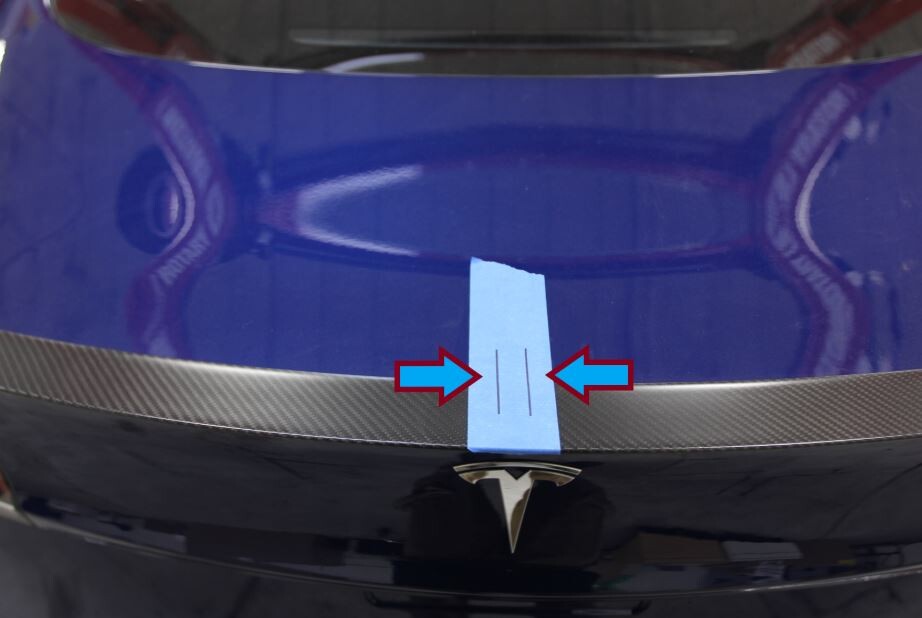 - Apply masking tape to the center of the rear spoiler. Leave excess masking tape to apply to the trunk lid later in this procedure.