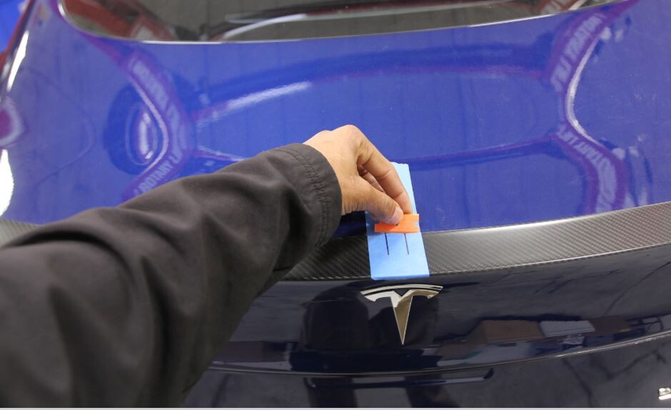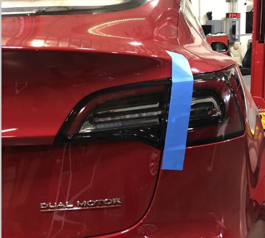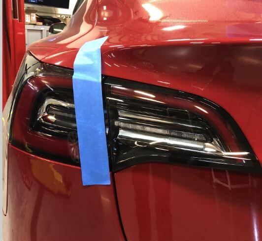 - Apply masking tape along the inner edge of the LH and RH taillights.