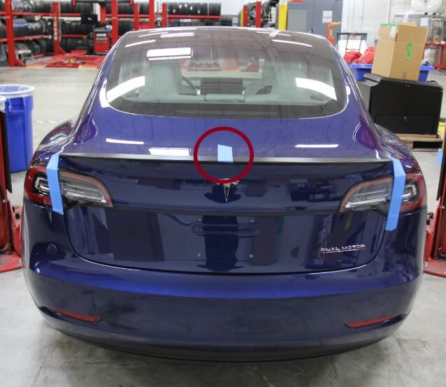 - Remove the tape backing on the rear spoiler to expose the adhesive tape.