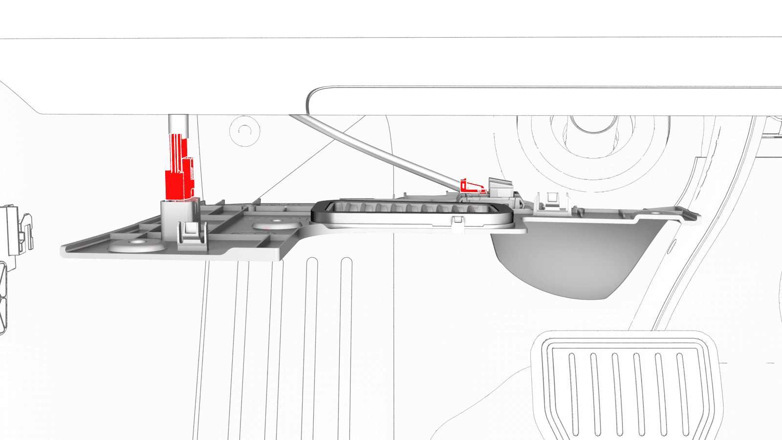 - Reconnect the diagnostic cable to the driver footwell cover, and then reconnect the electrical connector to the puddle light.
