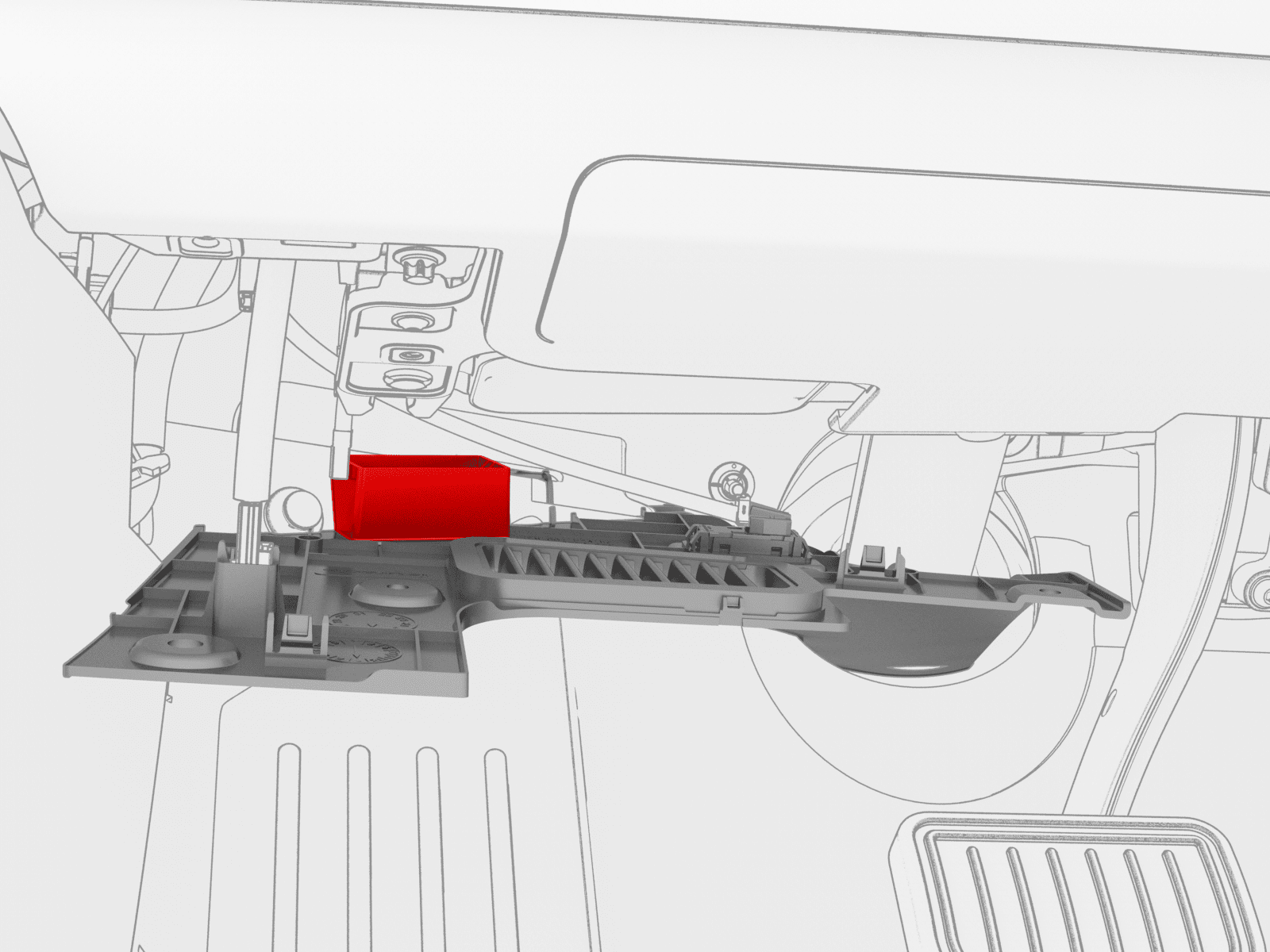 - Release the tabs that attach the driver footwell cover to the vehicle, and then remove the footwell cover from the vehicle.
