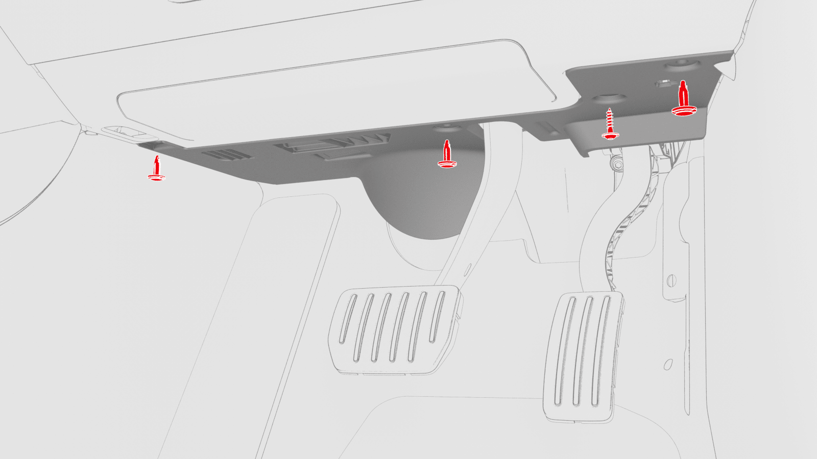 | Screw that attaches the driver footwell cover to the vehicle |