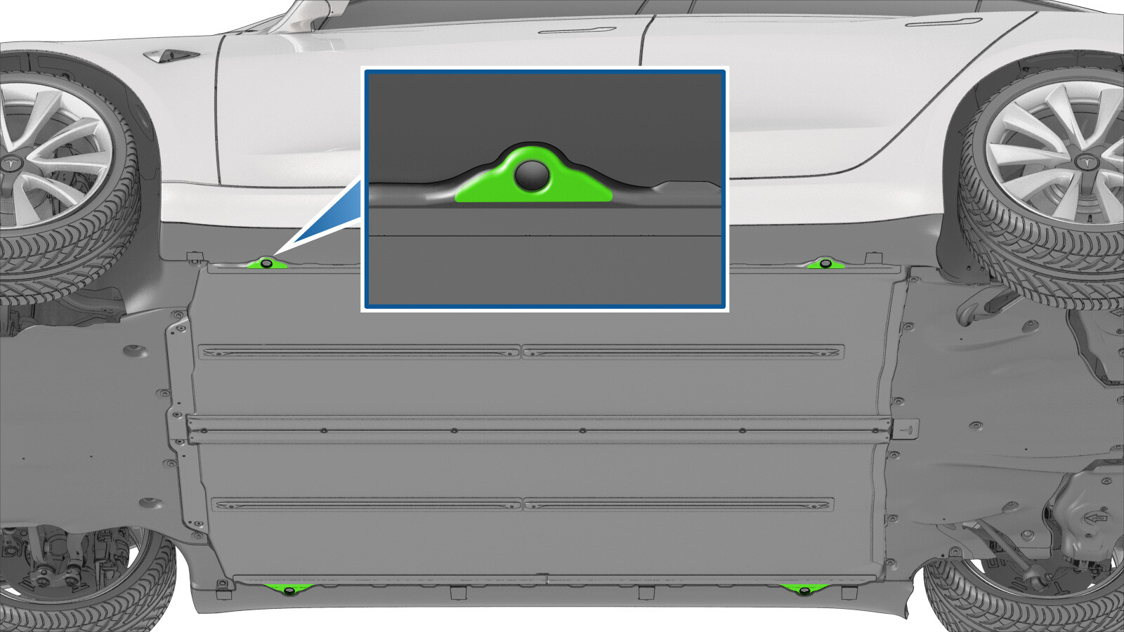 4. Position the front and rear lifting arm pads under the vehicle lift points on the HV battery as shown.